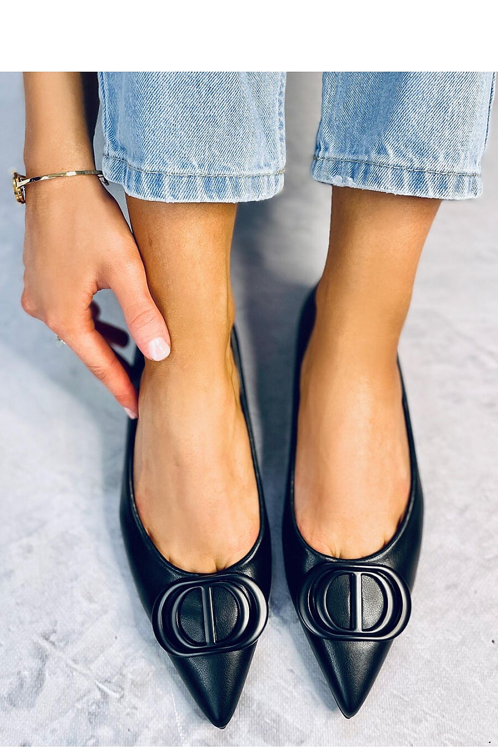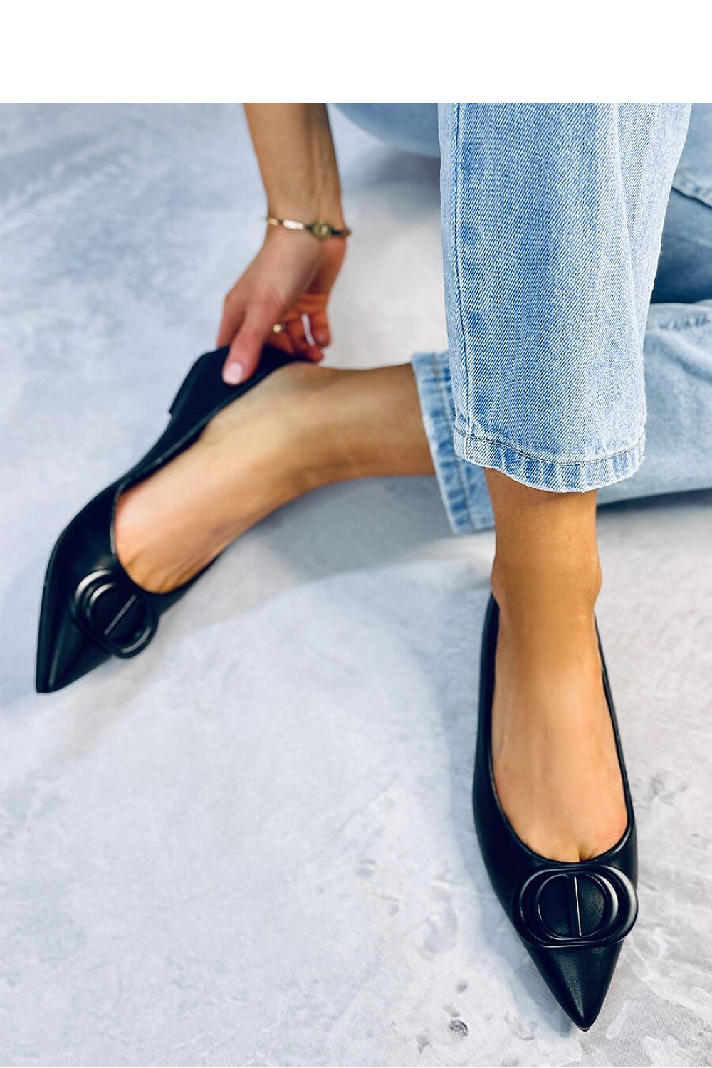 Elegante, vollflächige Ballerinas für Damen. Die markante Applikation auf der Vorderseite verleiht diesen Schuhen einen einzigartigen Stil.... Dies ist ein außergewöhnlich formschönes Modell mit einer spitzen Nase. Sie sollten in der Garderobe jeder Frau sein! Obermaterial - ökologisches Leder.