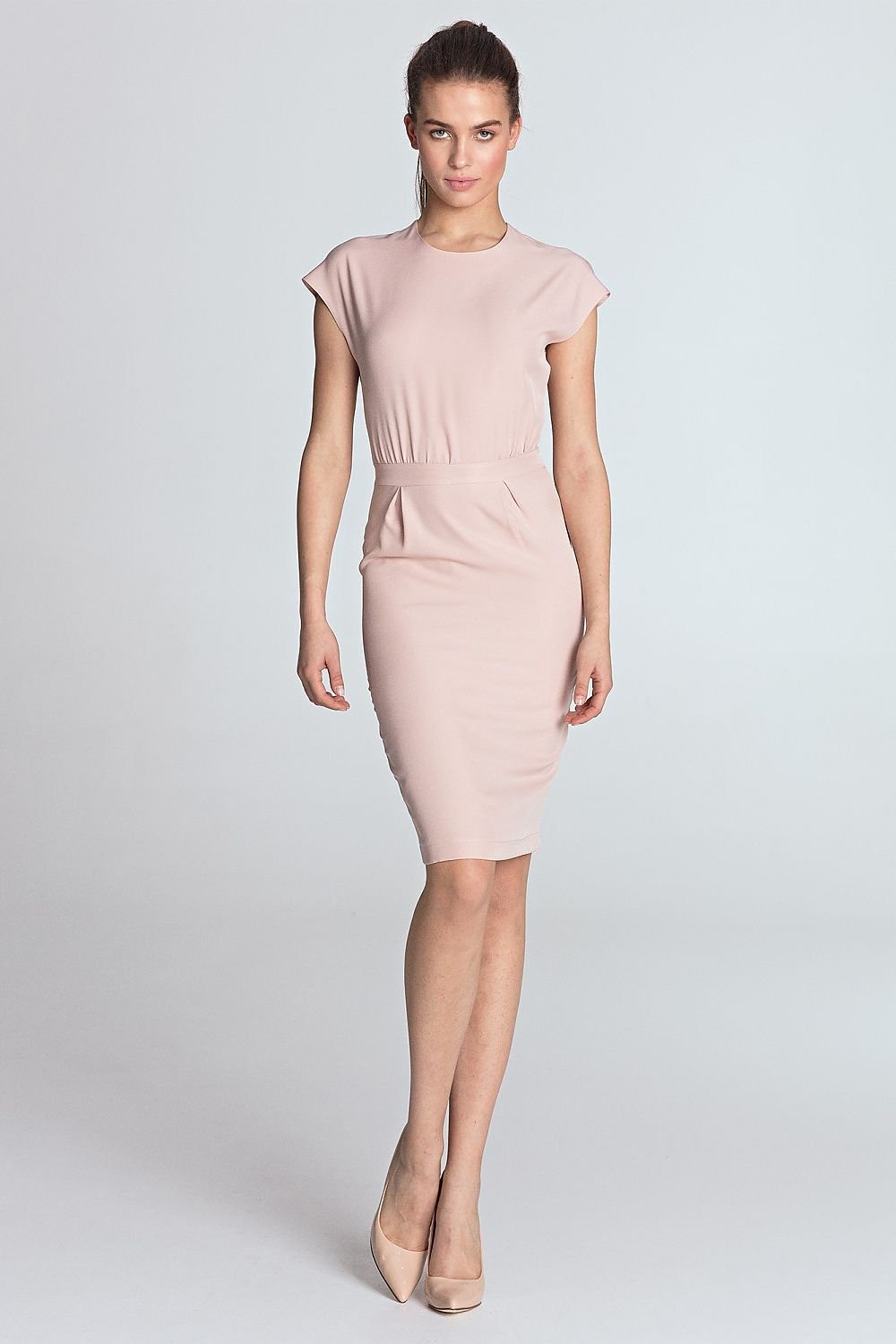 Ärmelloses Kleid im Bleistiftschnitt. Das Modell betont perfekt die weiblichen Formen, und das lockere Oberteil kaschiert subtil den Bauch. Ideal für Frühling und Sommer, ideal für die Arbeit. Das Kleid ist ungefüttert, hat einen Reißverschluss an der Seite und wird am Rücken geknöpft.