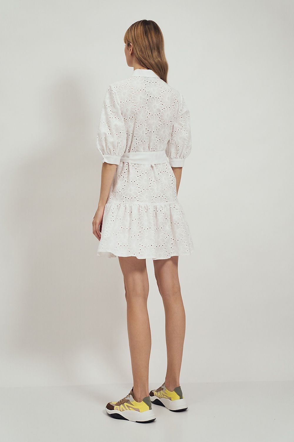 Das Baumwollkleid mit Rüsche ist ein Modell, das jedem von Ihnen Charme verleihen wird! Dank der Bindung betont es die Taille und verlängert die Beine. Buffy-Ärmel verleihen ihm einen lässigen Charakter. Der universelle Schnitt des Kleides passt zu jedem Outfit. Tauschen Sie die Accessoires: eine Jacke gegen eine Ramon-Jacke, Stilettos gegen Stiefel, und Sie werden jedes Mal umwerfend aussehen. Ein weiterer Vorteil ist das Material, aus dem das Kleid gefertigt ist - es besteht zu 100 % aus Baumwolle! Sie werden sich den ganzen Tag lang wohlfühlen!