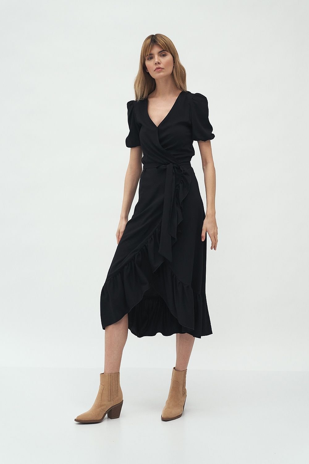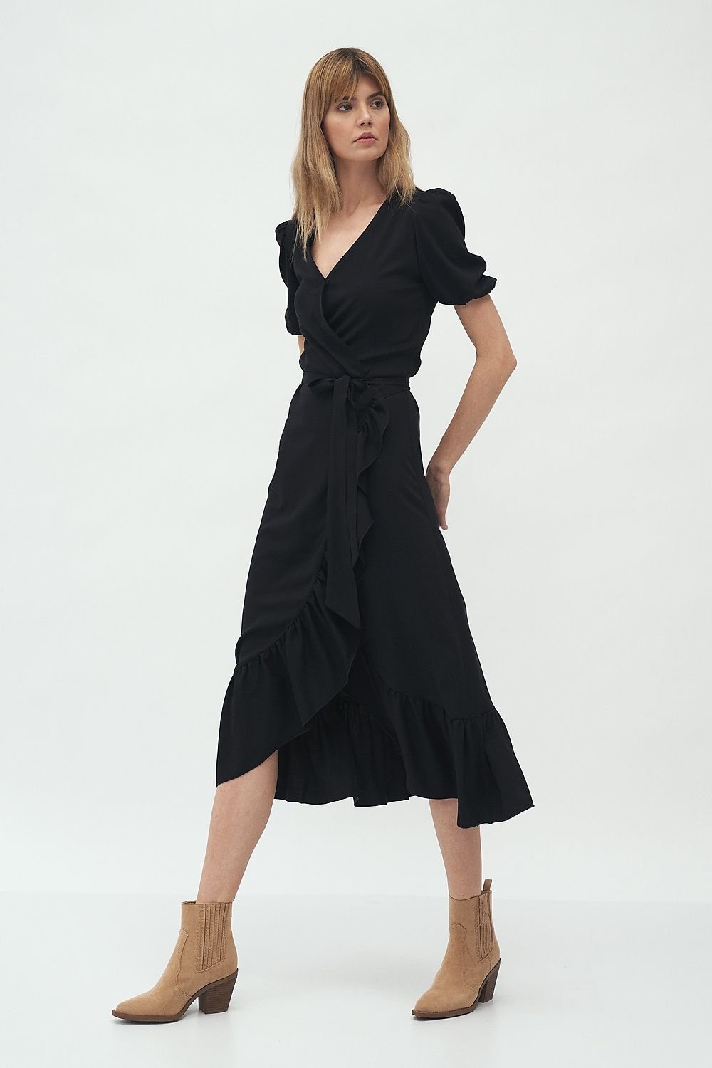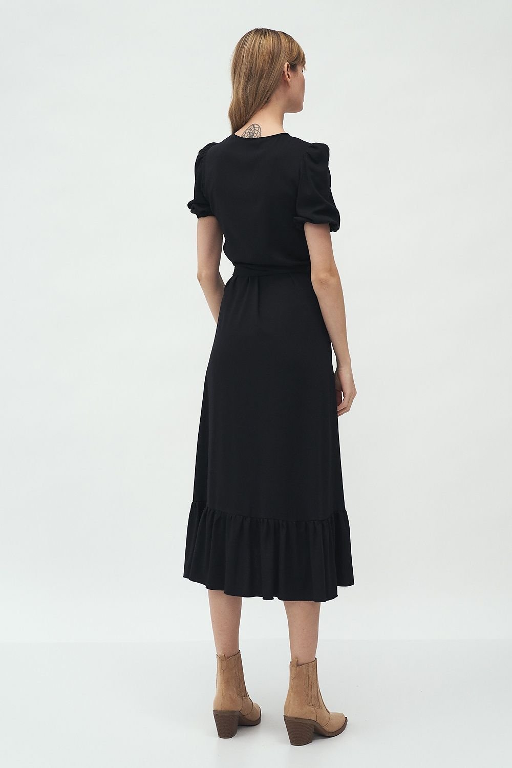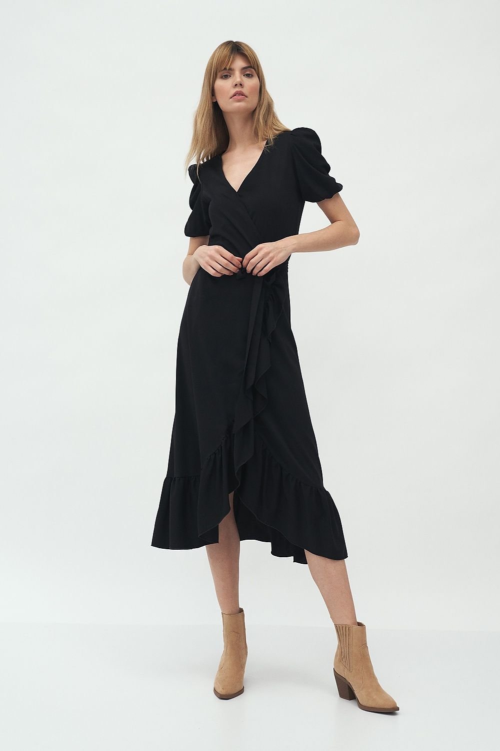 Ein charmantes Kleid im Boho-Stil ist perfekt für den Alltag, kombiniert mit Stiefeln oder Sneakers. Der Rüschenbesatz und der Rundhalsausschnitt verleihen ihm mädchenhaften Charme. Das Material sorgt dafür, dass Sie sich den ganzen Tag lang wohlfühlen! Ein Modell, das in Ihrem Kleiderschrank nicht fehlen darf.