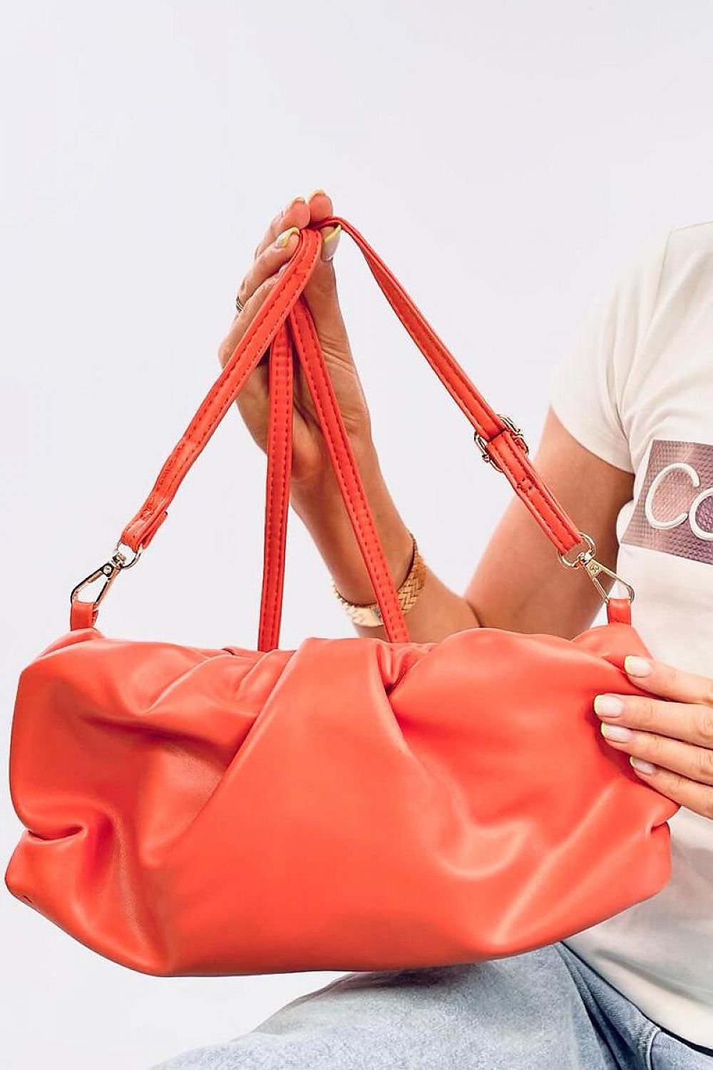 Handtasche für Frauen ? Baguette-Typ Postbag. Dieses Modell besticht durch sein einzigartiges Design mit einer modischen Falte. Es hat einen langen, abnehmbaren und verstellbaren Riemen. Im Inneren befindet sich ein Fach mit einer Reißverschlusstasche. Außenmaterial: ökologisches Leder.