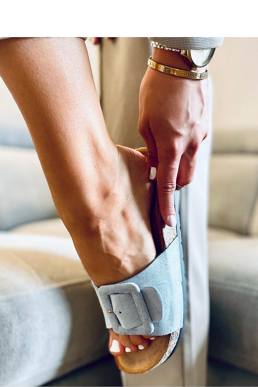 Damen-Flip-Flops aus Wildleder mit Korksohle. Sie haben einen breiten Riemen mit einer verstellbaren Schnalle für einen perfekten Sitz am Fuß. Sie sind ein unglaublich bequemes Modell mit einer geformten Innensohle. Sie werden sich sicher vom ersten Moment an in sie verlieben! Obermaterial ? ökologisches Wildleder.