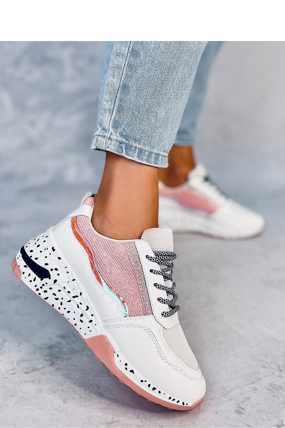Sportschuhe mit hoher Sohle. Sie zeichnen sich durch den originellen Schnitt auf einer einfarbigen, gepunkteten Sohle aus, die mit den modischsten Accessoires - Schlangenhaut, Glitzer und holografischen Einsätzen - kombiniert wurde. Gönnen Sie sich ein bisschen Wahnsinn und bestellen Sie diese Schuhe noch heute! Das Innere ist mit Stoff gefüttert. Obermaterial ? ökologisches Leder + Stoff.